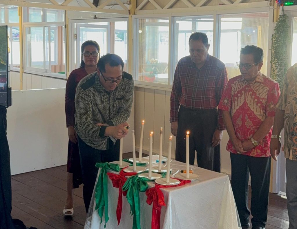 The Christmas worship was led by Liturgist Mrs. Alberthin Gabriela Reskir, with the Christmas reflection delivered by Reverend Ricky Lesbassa. In his message, Reverend Ricky invited all attendees to reflect on Christmas as a profound event of faith that brings peace, strengthens bonds of brotherhood, and encourages every member of the academic community to express love through concrete actions, both on campus and within society.