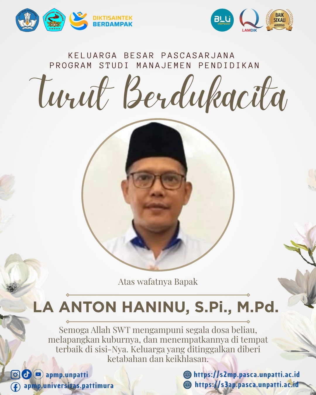 The Graduate School Family of Educational Management Expresses Deep Condolences on the Passing of Mr. La Anton Haninu, S.Pi., M.Pd.